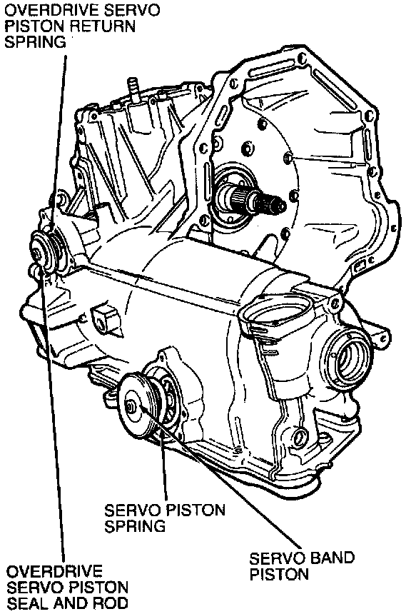 64. Install overdrive servo piston and overdrive servo rod into case.