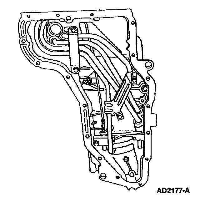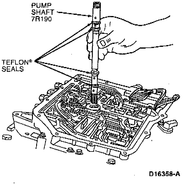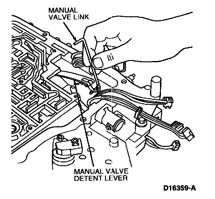 85. Start pump assembly and main control valve body over pump shaft and connect manual valve link to manual shift valve. Push main control valve body down until seated.