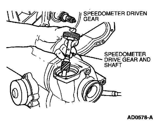 80. Install speedometer driven gear retainer and shaft. Install speedometer drive gear and shaft making sure that slots in gear align with roll pin in shaft. Install speedometer thrust bearing and race.