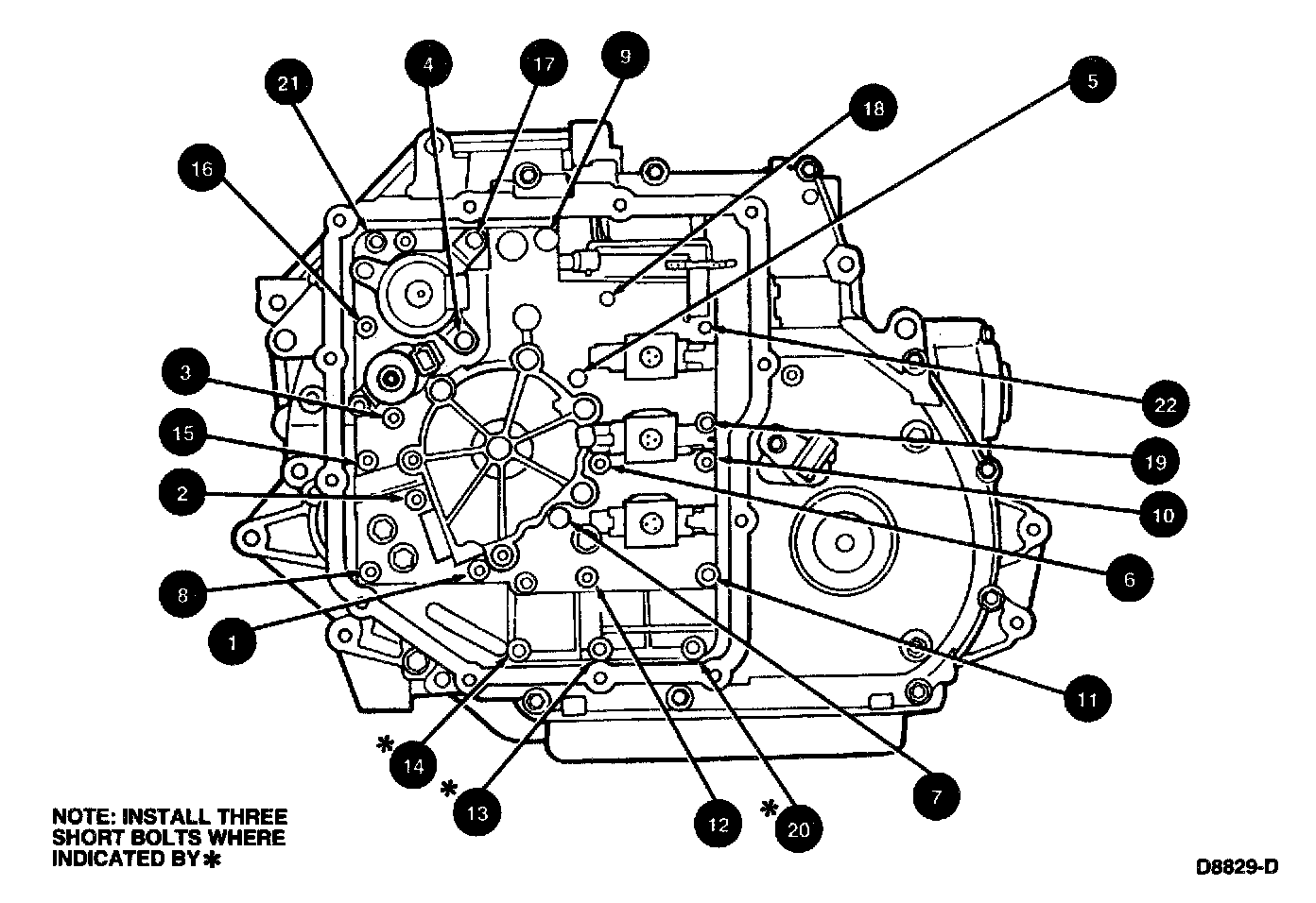 86. Install main control valve body bolts and tighten in sequence to 9-12 Nm (80-106 inch lbs.).