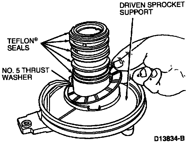 3. Install No. 5 thrust washer to driven sprocket support. Use petroleum jelly to hold washer in place.