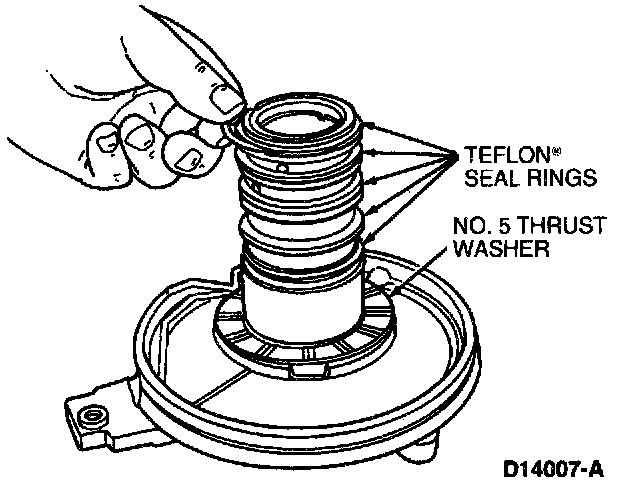 1. Remove five Teflon seal rings and No.5 thrust washer. Discard seal rings.
