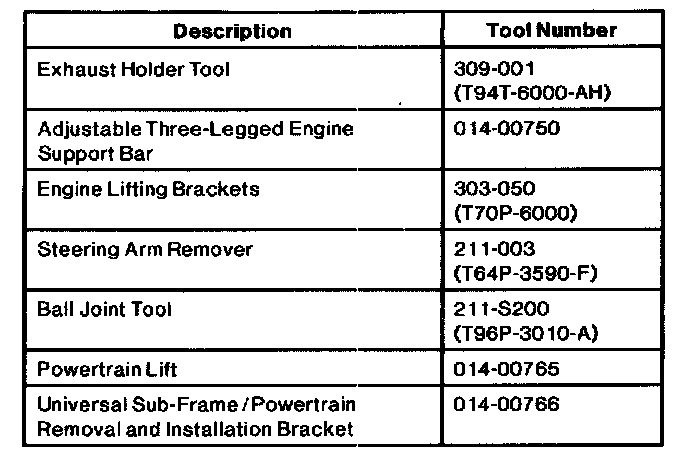 14. Install Rotunda Adjustable Three-Legged Engine Support 014-00750 or equivalent to three engine lifting points, following manufacturer instructions.