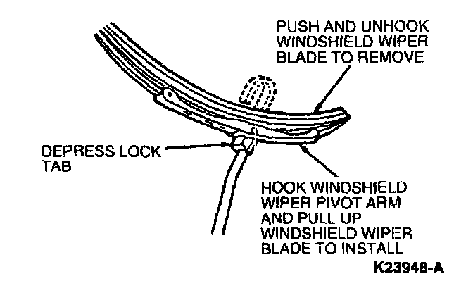 1. Depress locking tab on windshield wiper blade.