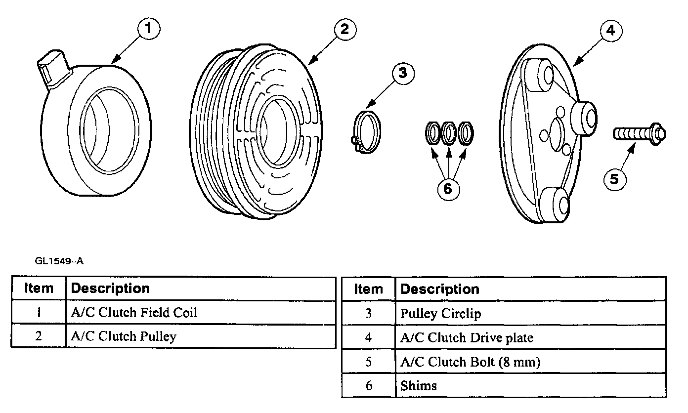 NOTE: Before disassembling the A/C compressor, check the A/C clutch air gap.
