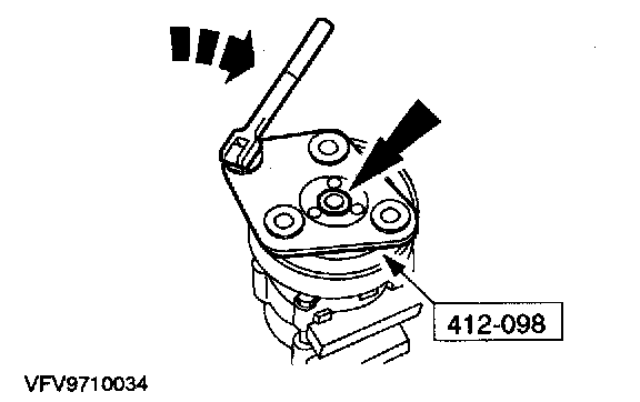 2. Using the special tool, remove the A/C clutch bolt and drive plate.