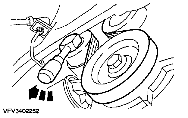 - Slacken the belt by turning the belt tensioner in a clockwise direction.