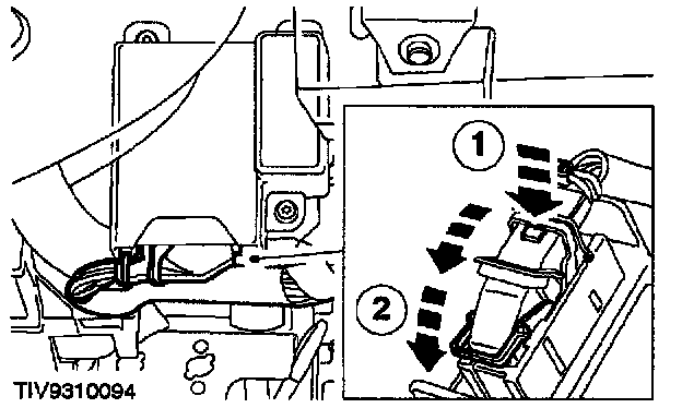 2. Release the two stage self-locking electrical connector: first stage disengages the connector, second stage releases the connector from the air bag control module.