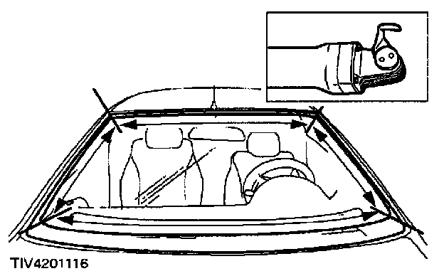 4. Prepare the glass, windshield opening and trimmed PU adhesive in accordance with the instructions supplied with the adhesive kit.