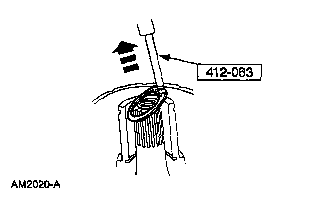 5. Install the shaft seal snap ring with the sharp edge facing up.