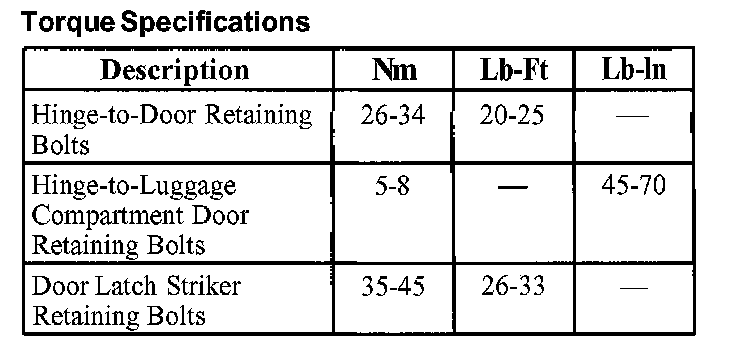 Torque Specifications: