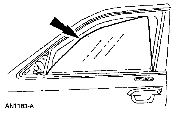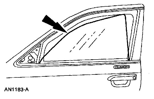 NOTE: Align the front door window glass with the front door window channel bracket, if necessary.
