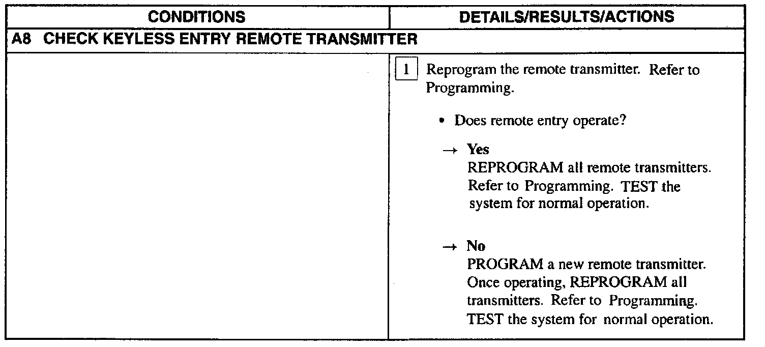 Test A: Doors Do Not Lock/Unlock Using The Remote Transmitter