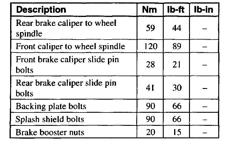 Torque Specifications