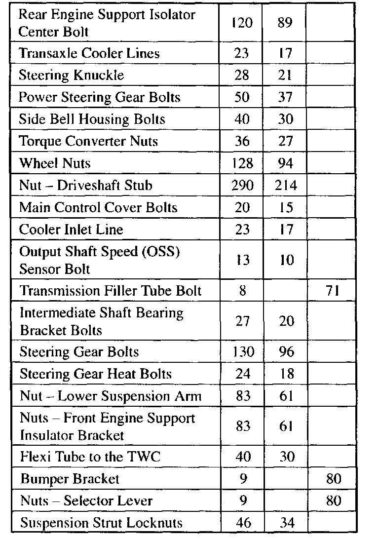 Torque Specifications