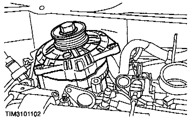 10. Remove the accessory drive belt. For additional information, refer to Drive Belts, Mounts, Brackets and Accessories.