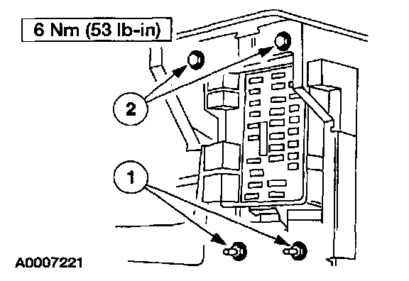 ^ Prior to removal of the module, it is necessary to upload module configuration information to the appropriate scan tool. This information needs to be downloaded into the new module once installed. For additional information, refer to Module Communication Network (Information Bus).