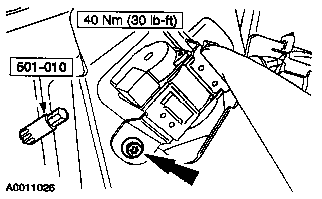10. Using the special tool, remove the second row safety belt anchor bolt.