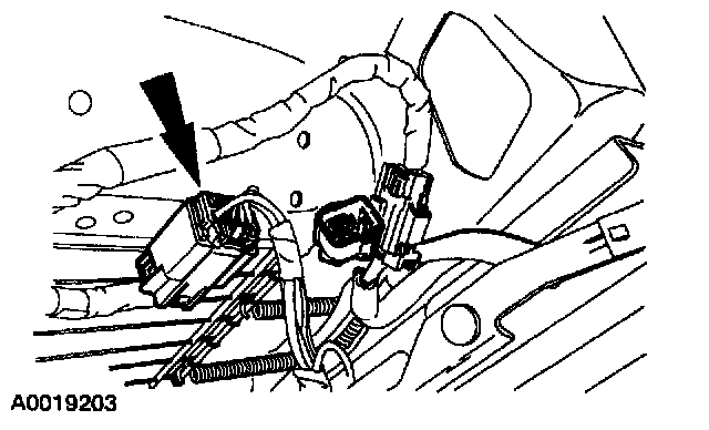 2 Attach a restraint system diagnostic tool to the driver seat side air bag floor electrical connector (if equipped).