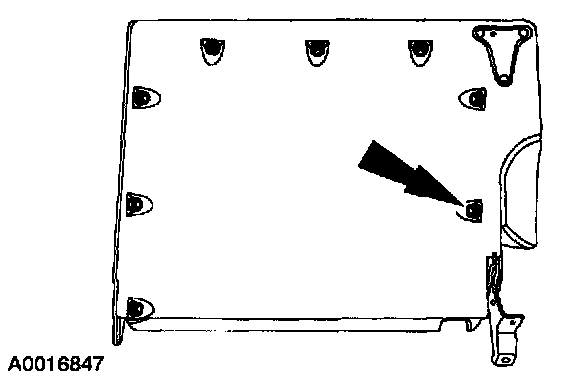 2. Remove the seat backrest. For additional information, refer to Rear Seat Backrest-60/40 Split Backrest in the removal portion.