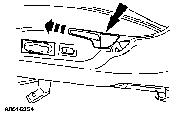 2 Carefully pull forward on the side shield releasing the hidden clip at the front of the seat cushion frame.