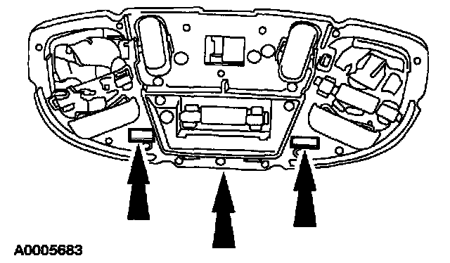 3. Release the two retaining clips (through the access holes) and remove the interior/map reading lamp assembly.