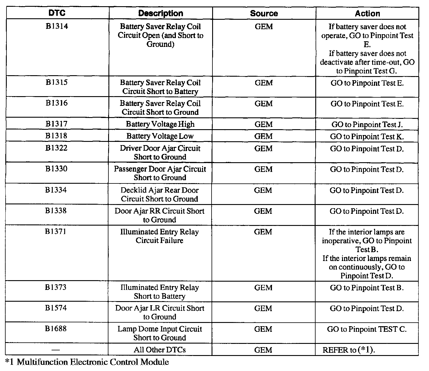 For a complete list of multi-function module DTCs, refer to Multifunction Electronic Control Module.