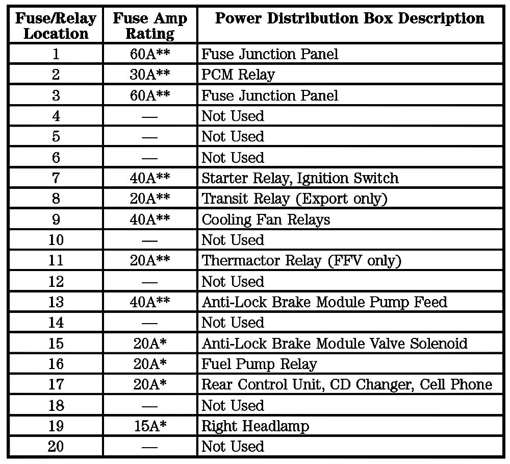 ALLDATA Editor's Note: Ford identifies this one component by 2 different names. Users have reported success comparing these images to determine Application/ID or Location of Fuses and Relays with in the Battery Junction Box/Power Distribution Box.