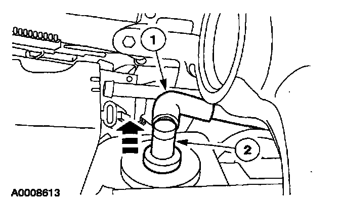 1 Remove the crankcase ventilation hose from the positive crankcase ventilation (PCV) valve.