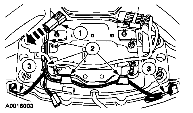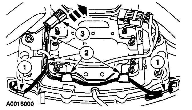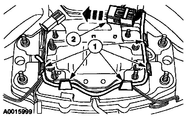 1 Remove the driver air bag module wire harness from the wire shield retaining Clips.