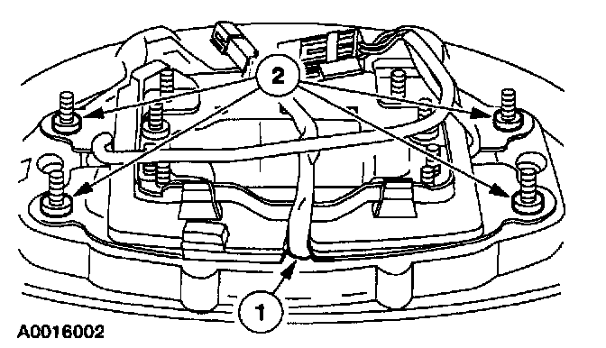 3 Make sure that there are not any wires between the air bag module backing plate and the steering wheel armature mating surfaces.