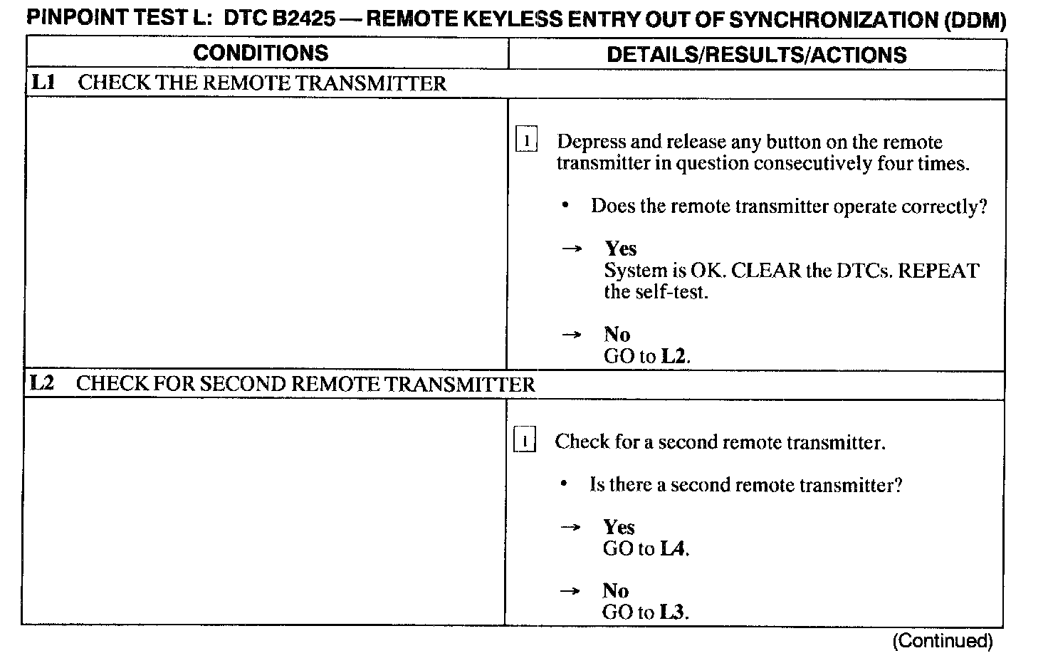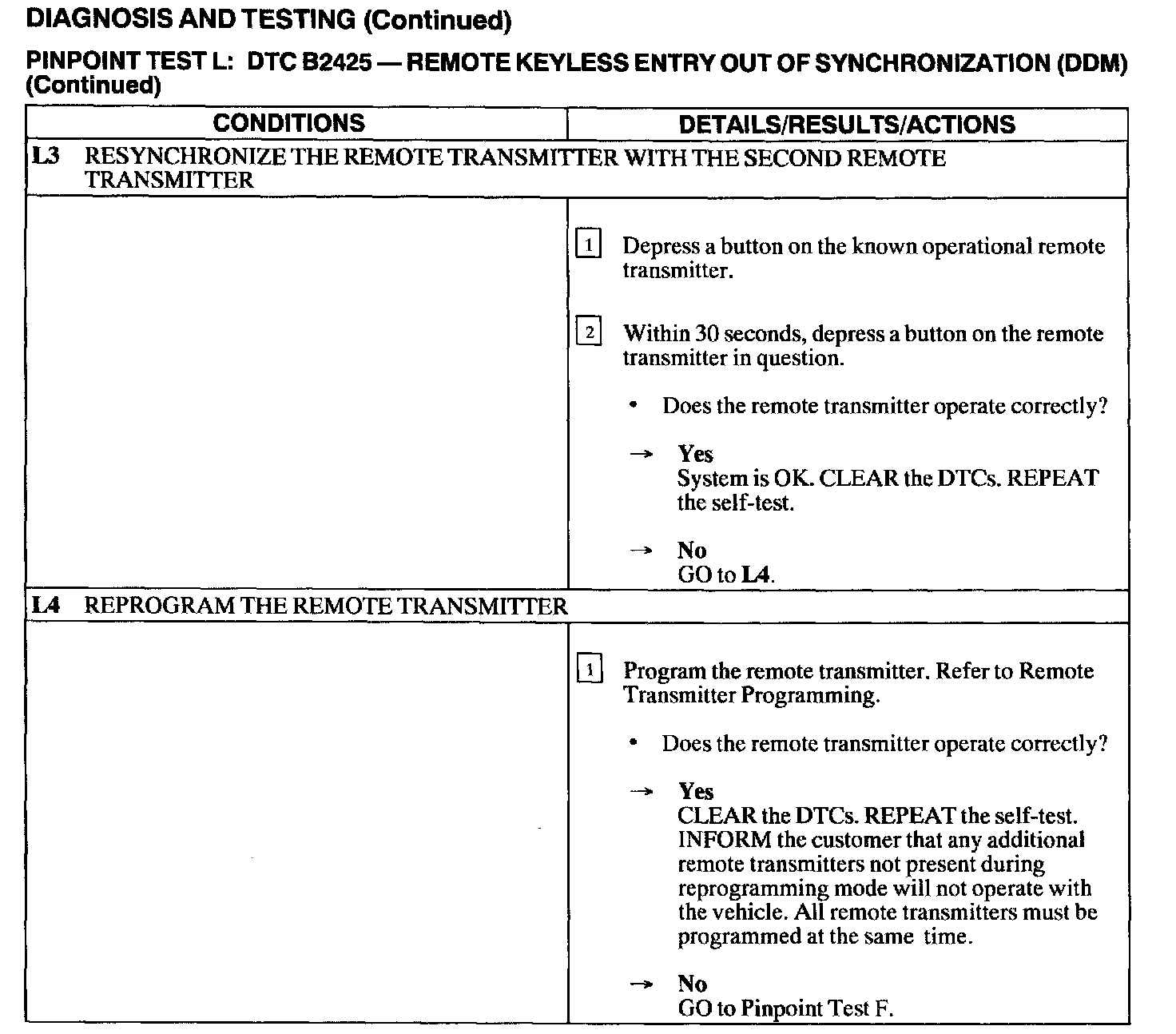 Test L: DTC B2425 - Remote Keyless Entry Out of Synchronization