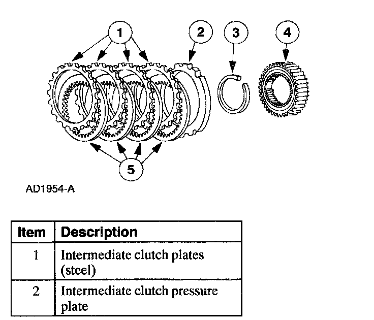 The intermediate clutch works with the intermediate one-way clutch to hold the reverse sun gear stationary in second gear. The intermediate clutch remains applied in third and fourth gears, but does not transmit power.