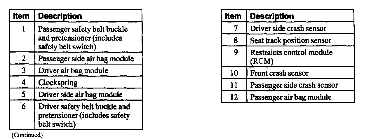Air Bag And Safety Belt System Components Part 2 Of 2: