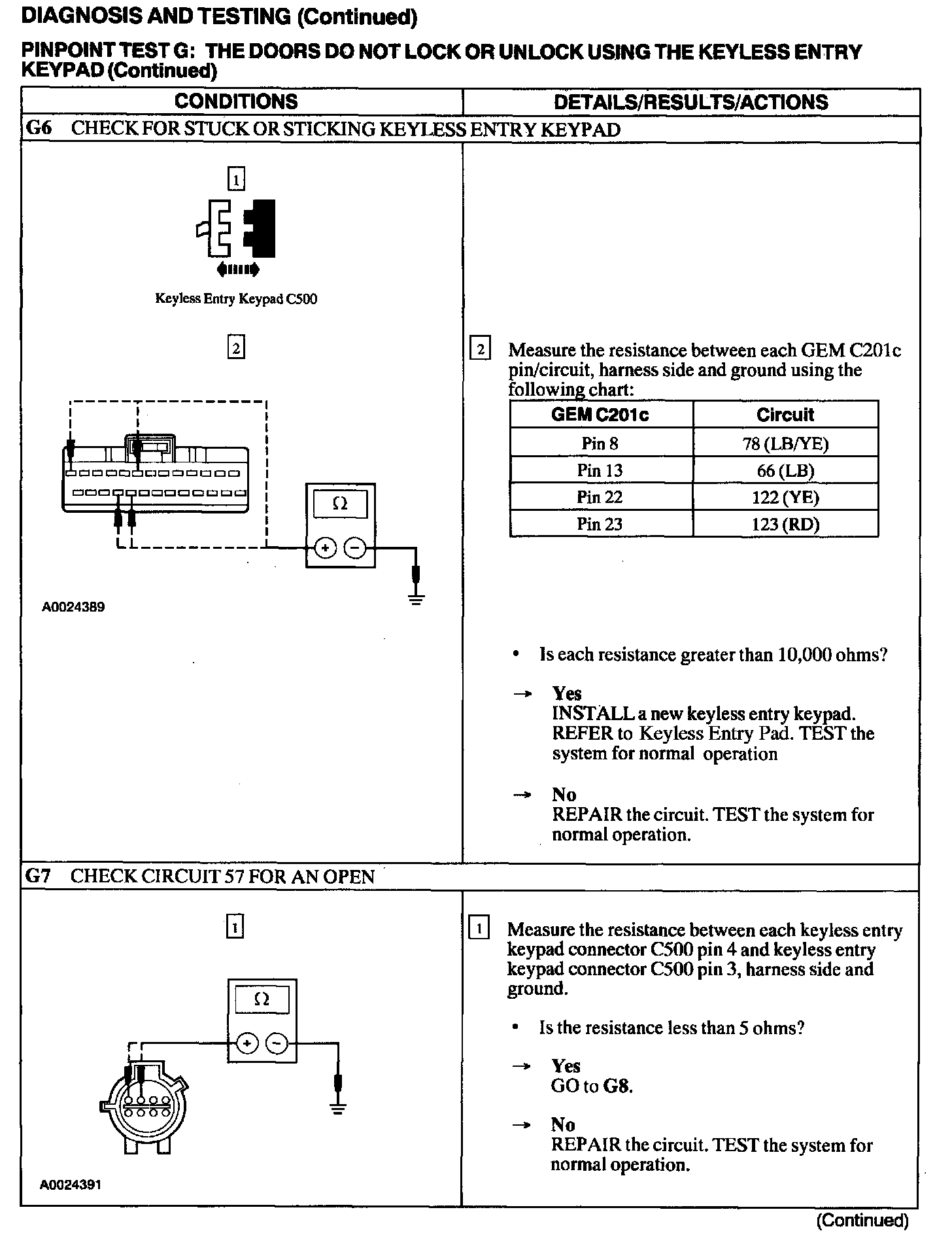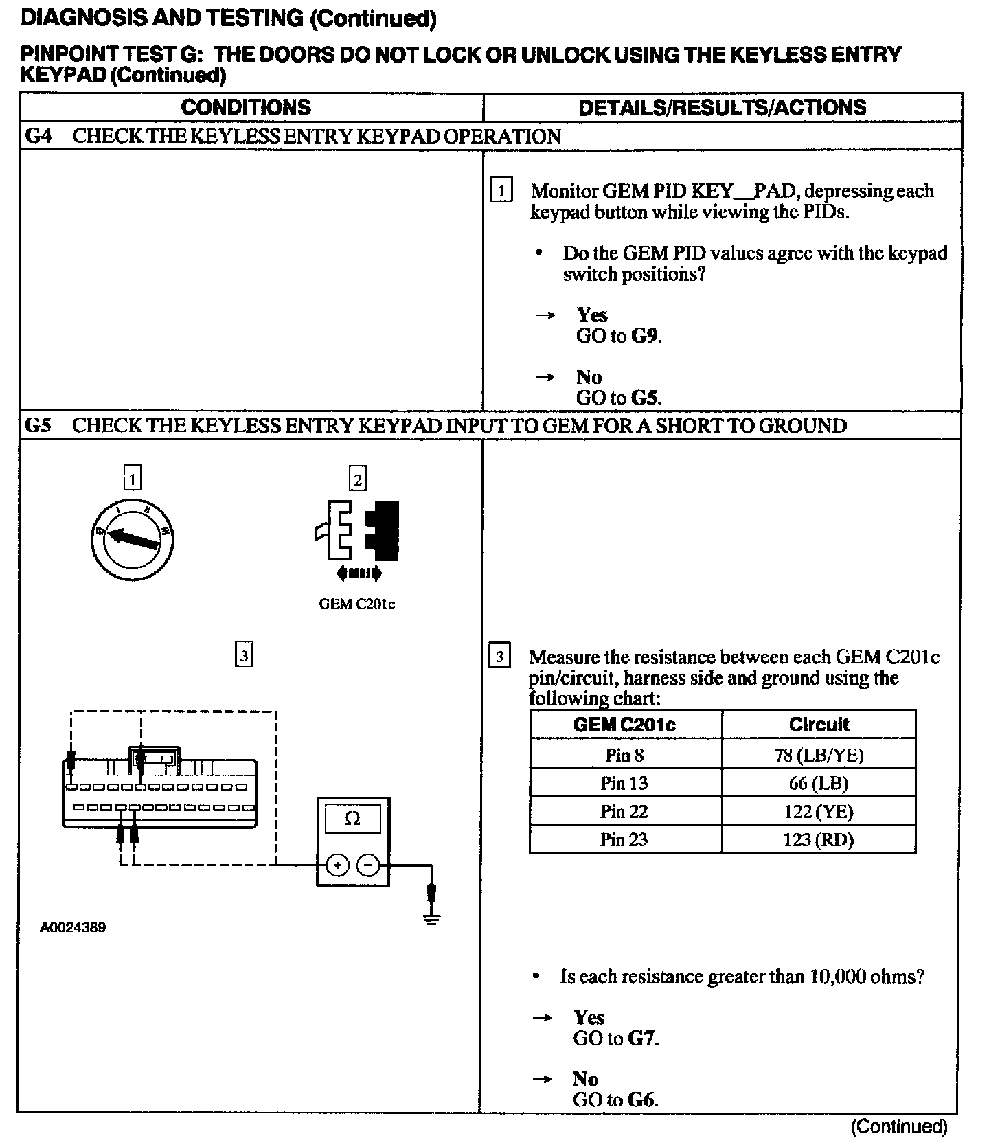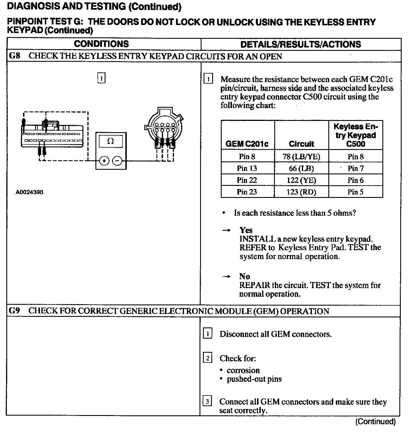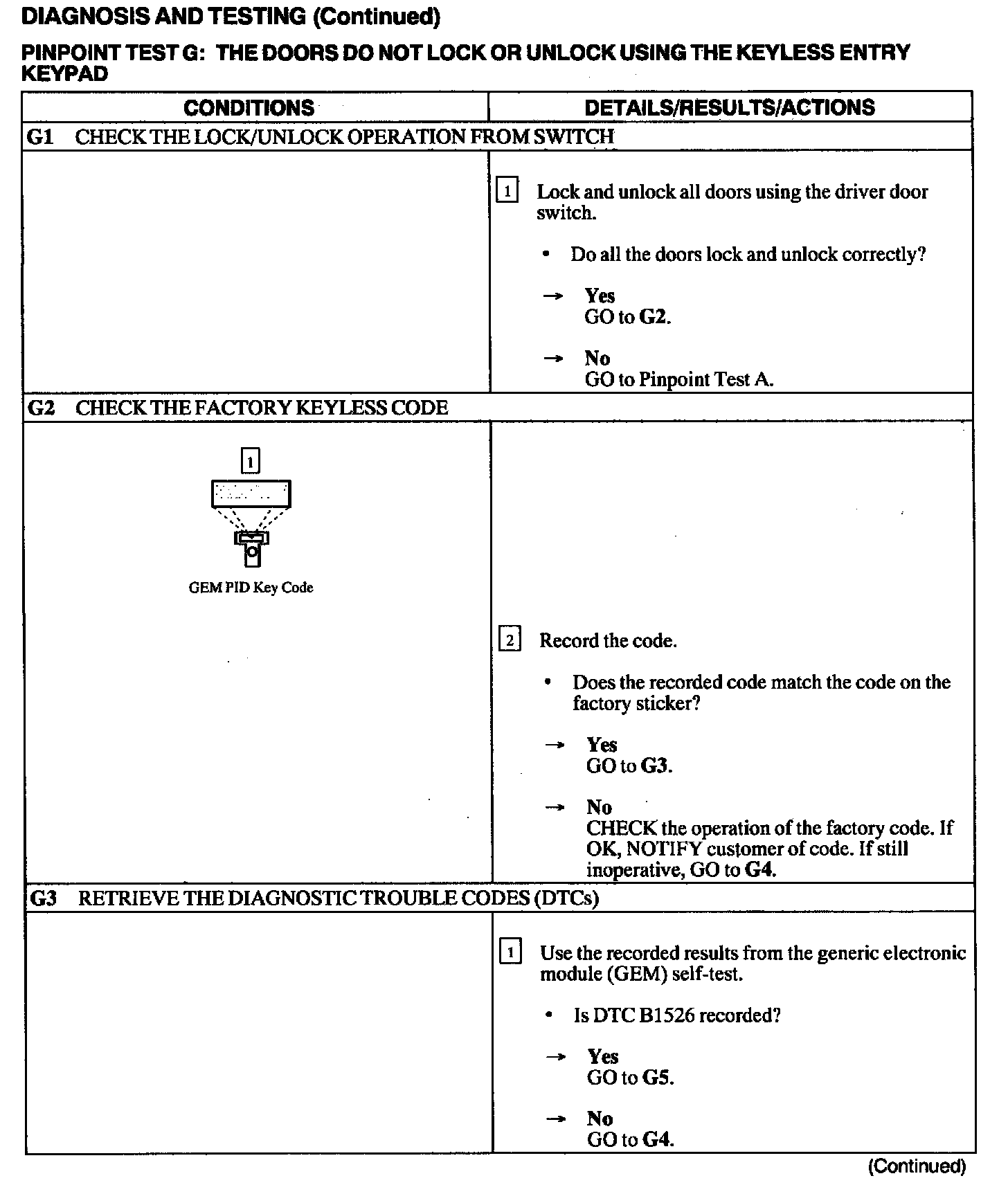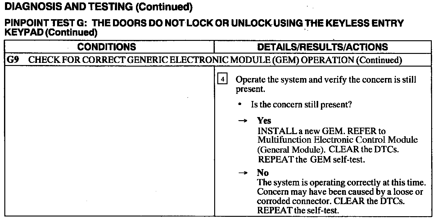 Test G: Doors Do Not Lock or Unlock Using the Keyless Entry Keypad