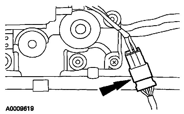 ^ Disconnect the roof opening panel motor electrical connector from the roof opening panel motor wiring connector.