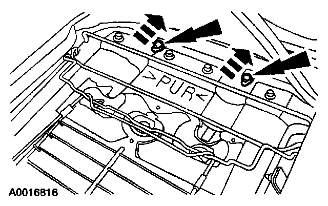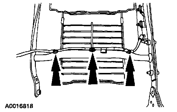 NOTE: If the pin-type retainers are damaged, install new retainers. This will keep the wiring harness routed correctly.