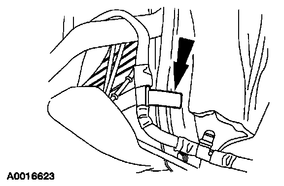 5. Route the side air bag wiring harness along the side of the seat and install the pin-type retainer to the outside of the seat backrest frame.