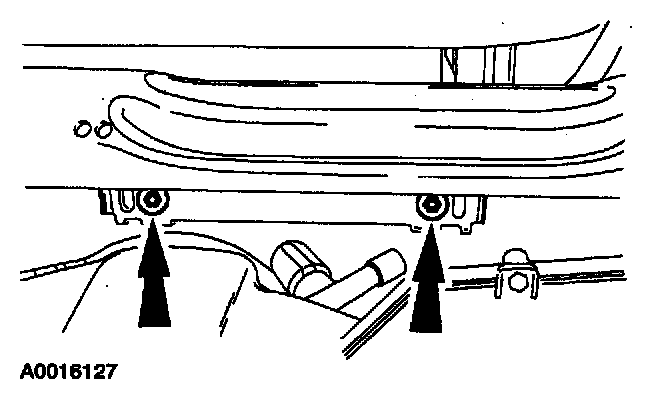 7. Through the glove box opening, remove the passenger air bag module retaining bolts.