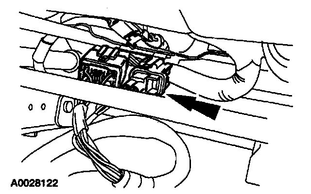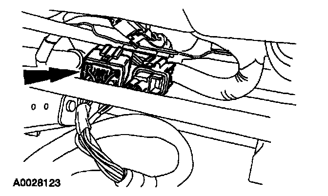 36. Remove the restraint system diagnostic tool from the vehicle harness side of the four-pin clockspring electrical connector at the base of the steering column.