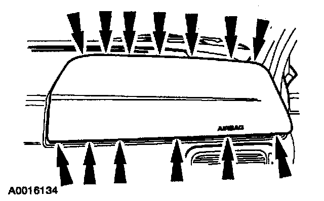 3 Pull the passenger air bag module and trim cover away from the I/P, but do not remove it.