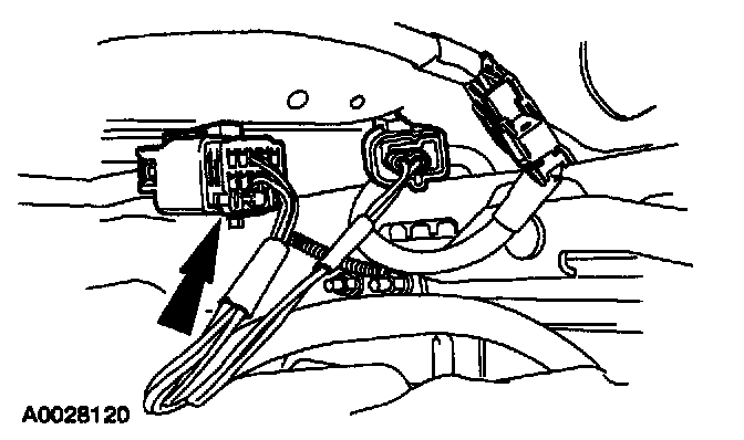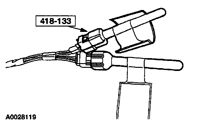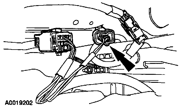 12. Attach the restraint system diagnostic tool to the vehicle harness side of the passenger side air bag module electrical connector.