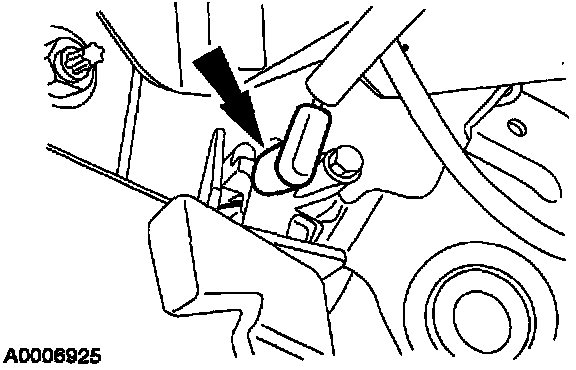 3 Squeeze the retainer and disconnect the front parking brake cable and conduit.