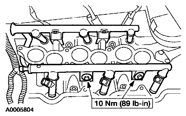 9. Install the fuel injection supply manifold and fuel injectors as an assembly.