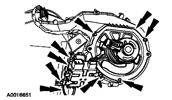 NOTE: The evaporator core is serviced as a core and housing assembly. The evaporator core, internal doors, seals and door linkage are included with the housing. Transfer the blower motor and wheel assembly, heater core and cover, dash panel seals and vacuum actuators to the new housing.