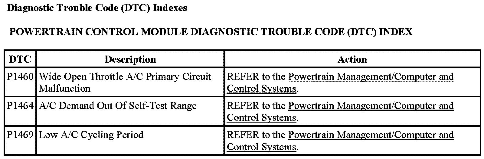 Powertrain Control Module Diagnostic Trouble Code (DTC) Index