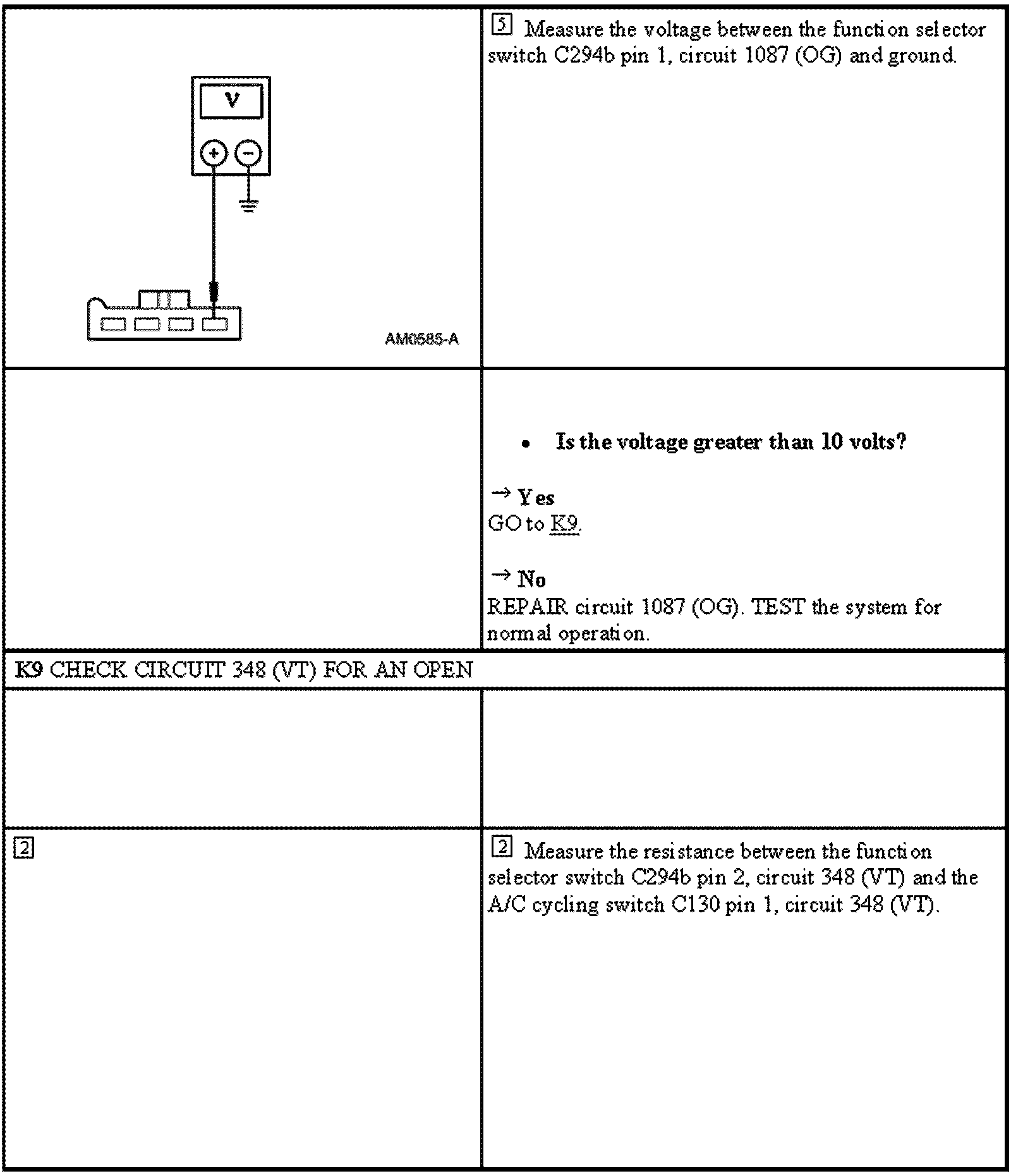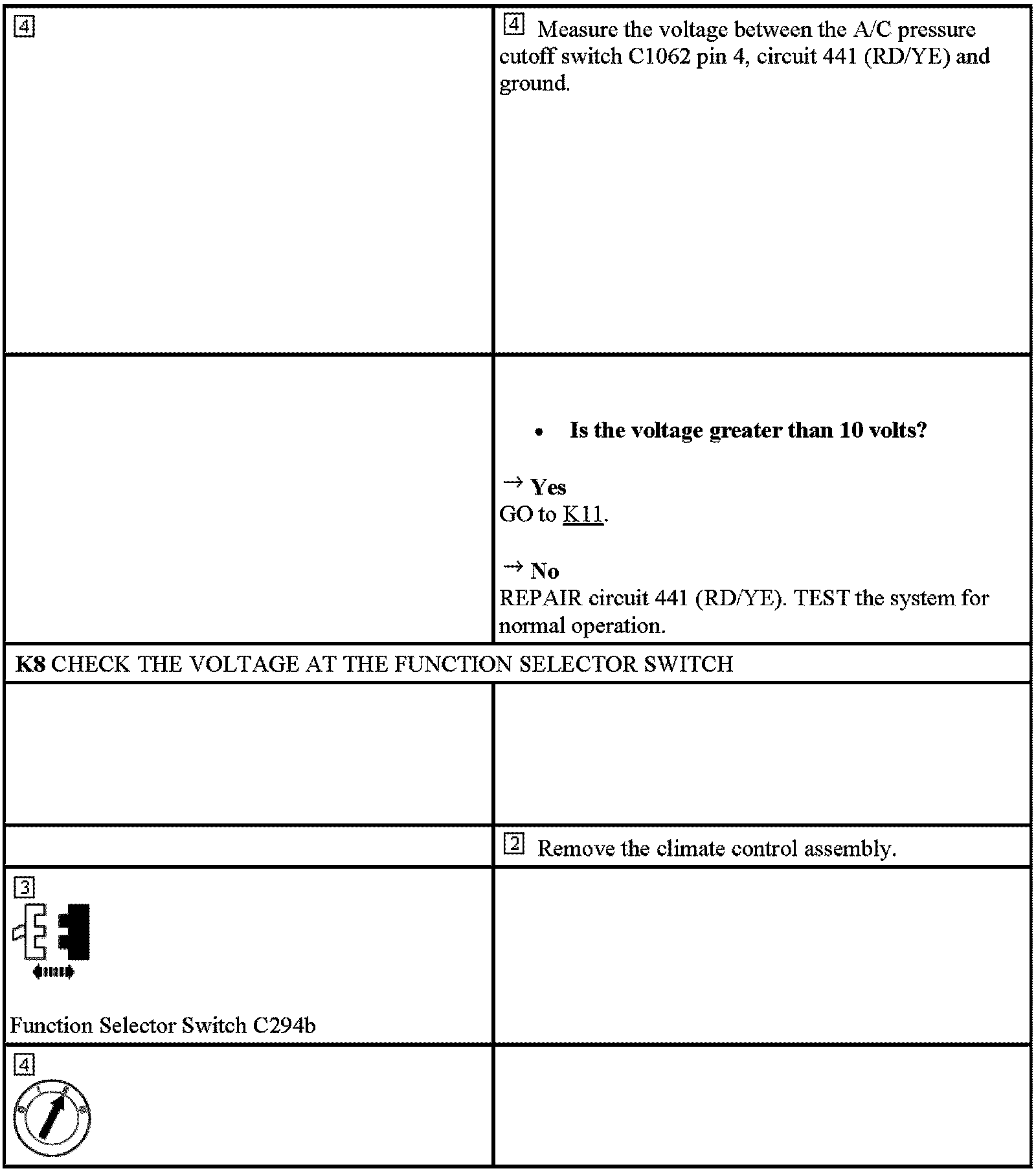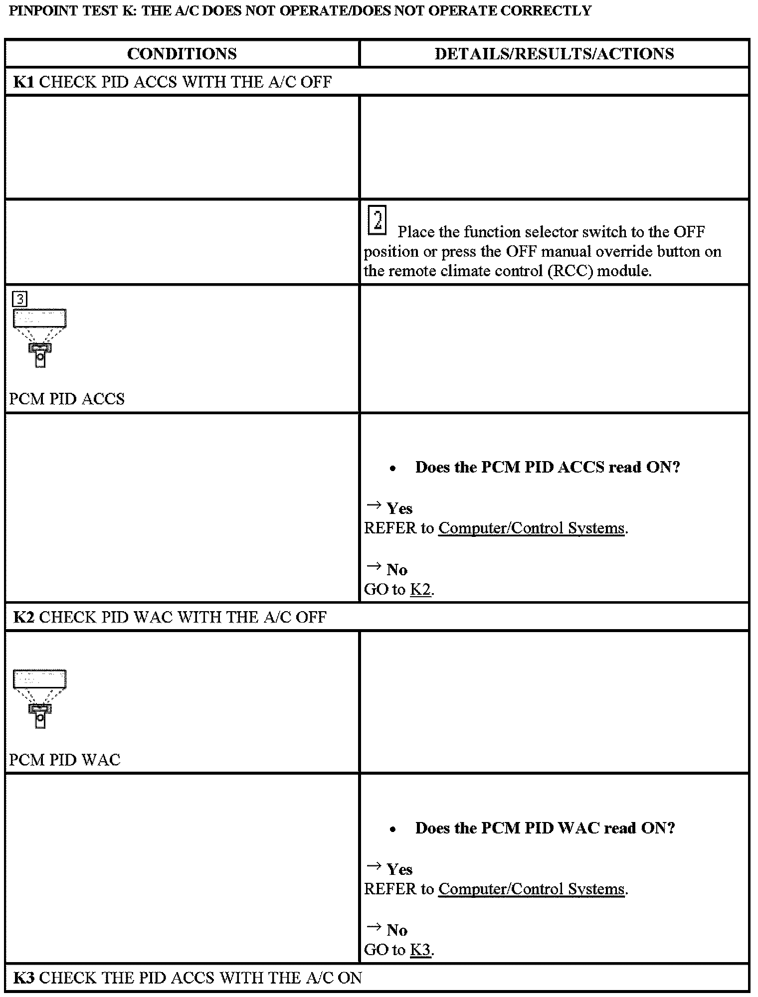 Test K: The A/C Does Not Operate/Does Not Operate Correctly