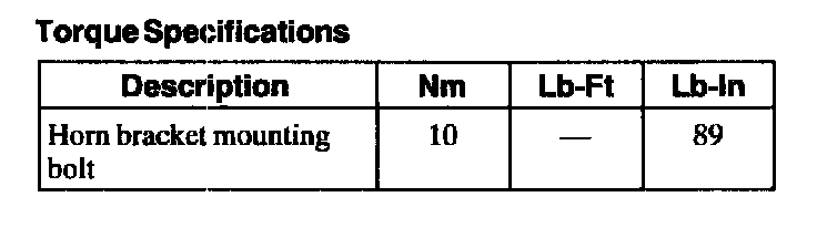 Torque Specifications: