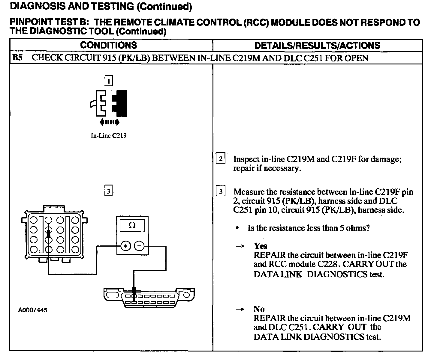Test B: RCC Module Does Not Respond To The Diagnostic Tool