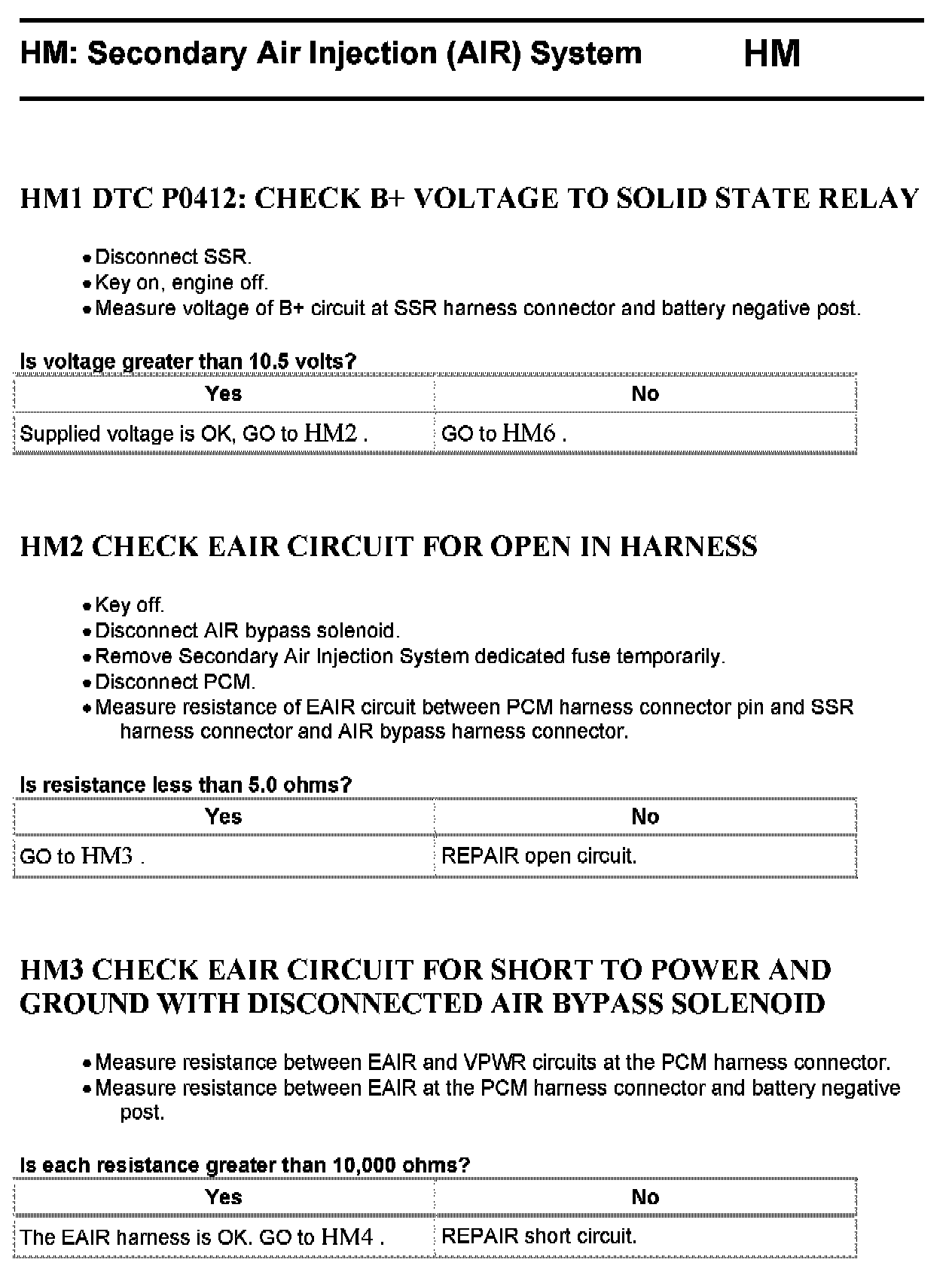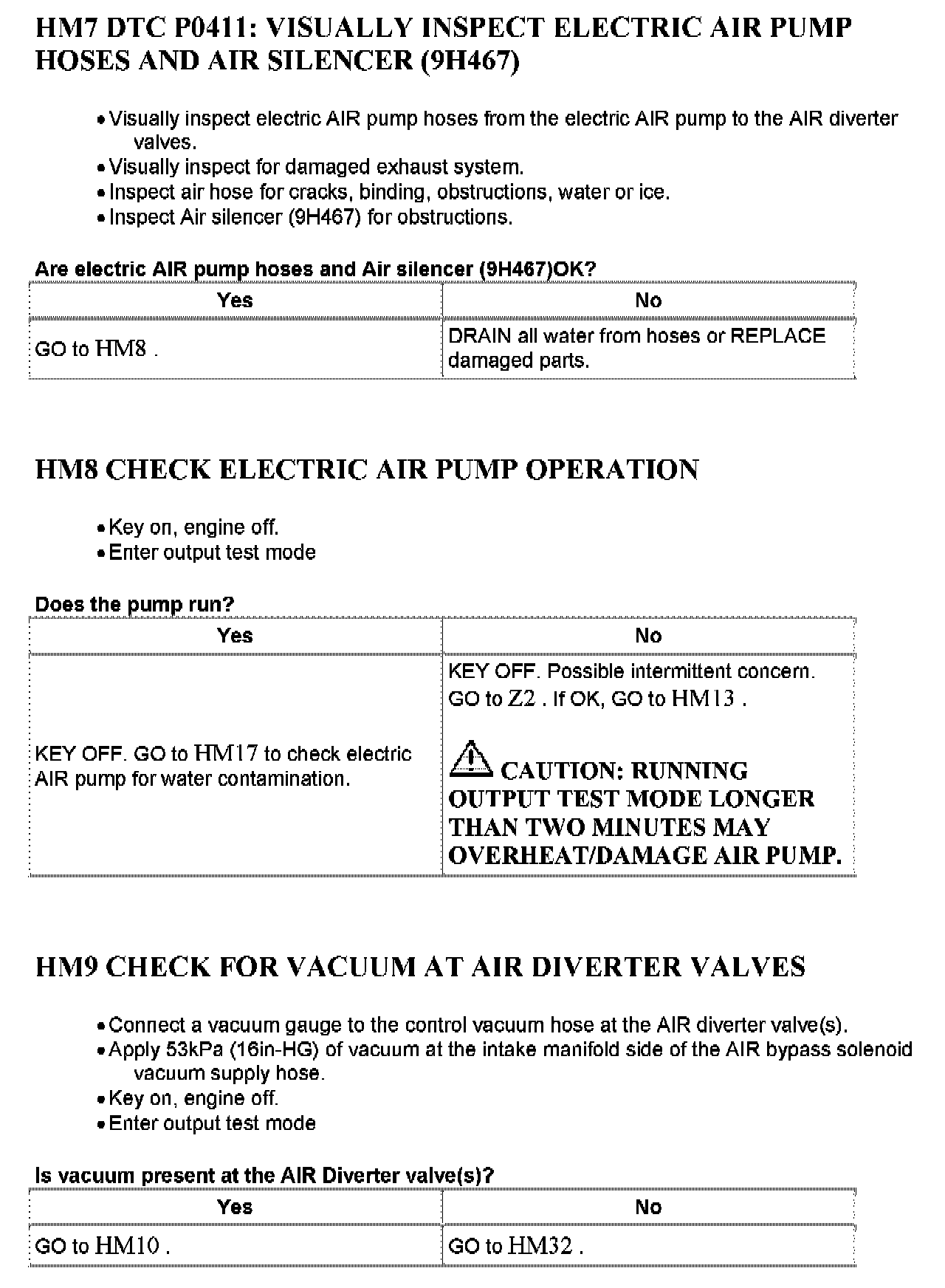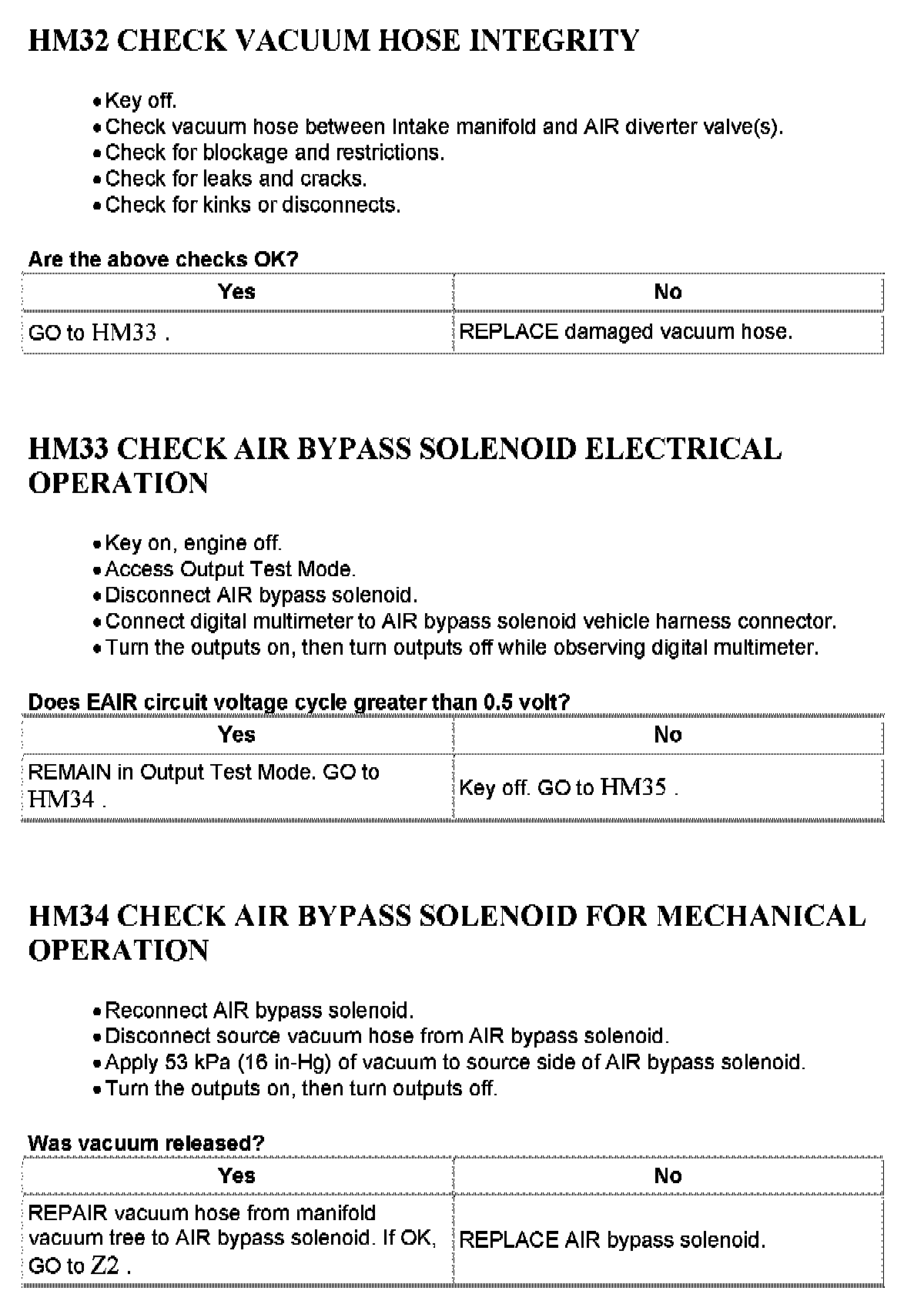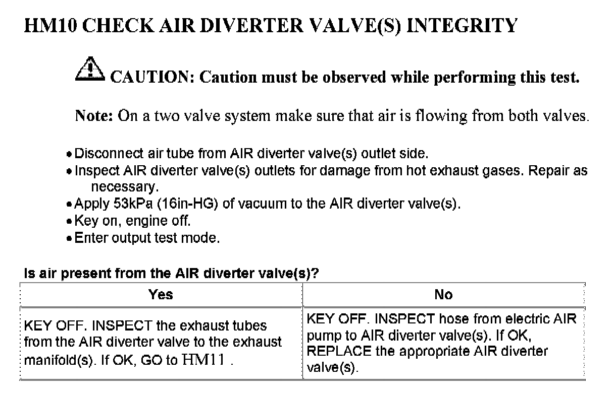 Tests HM: Secondary Air Injection (AIR) System